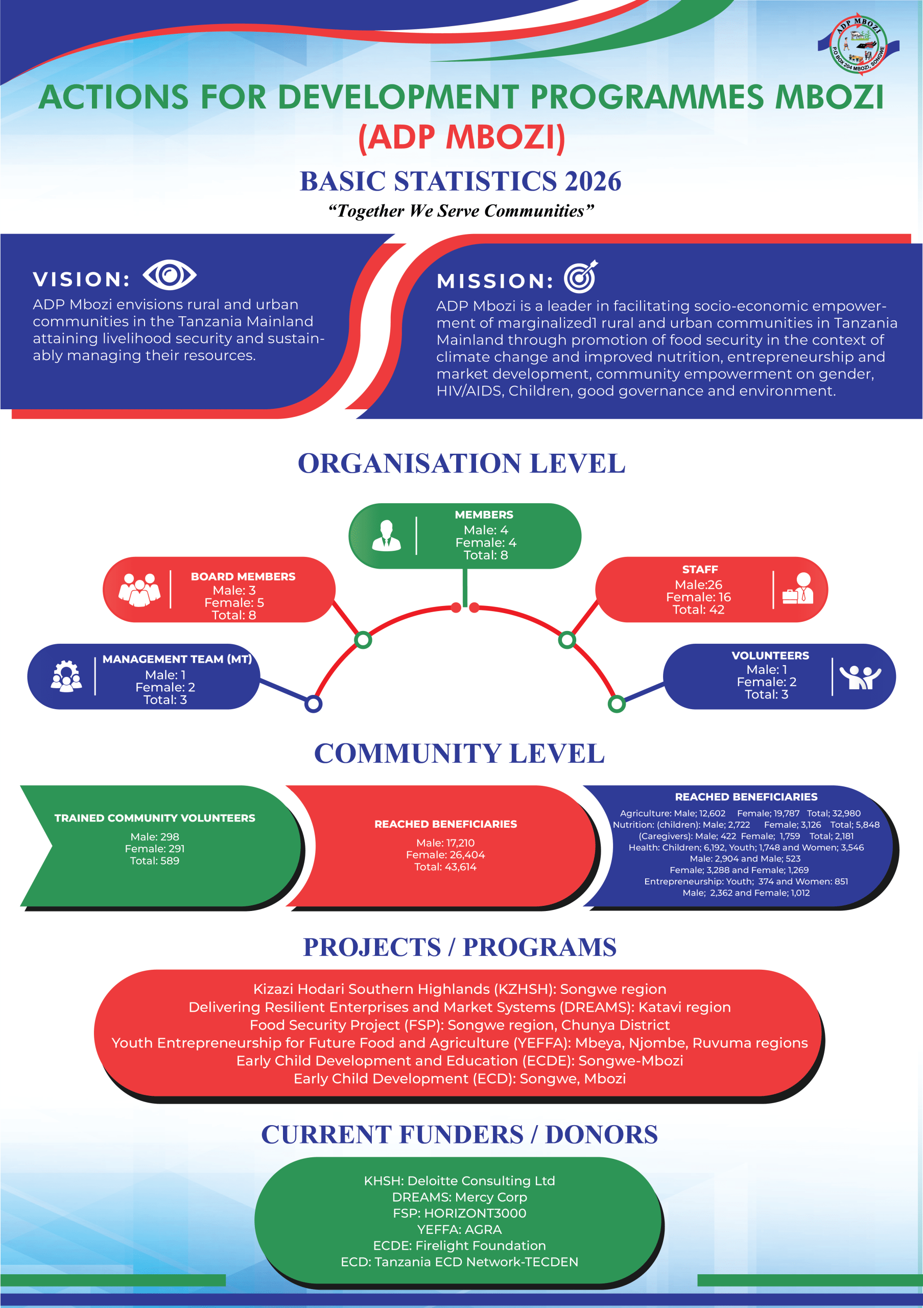 Actions for Development Programmes – Mbozi (ADP Mbozi) is a registered national NGO with its headquarters based in Vwawa, Songwe region. The organization was officially registered on 10th October 2005 under Non Governmental Organization’s (NGO) Act number 24 of 2002, section 11(3) Act.